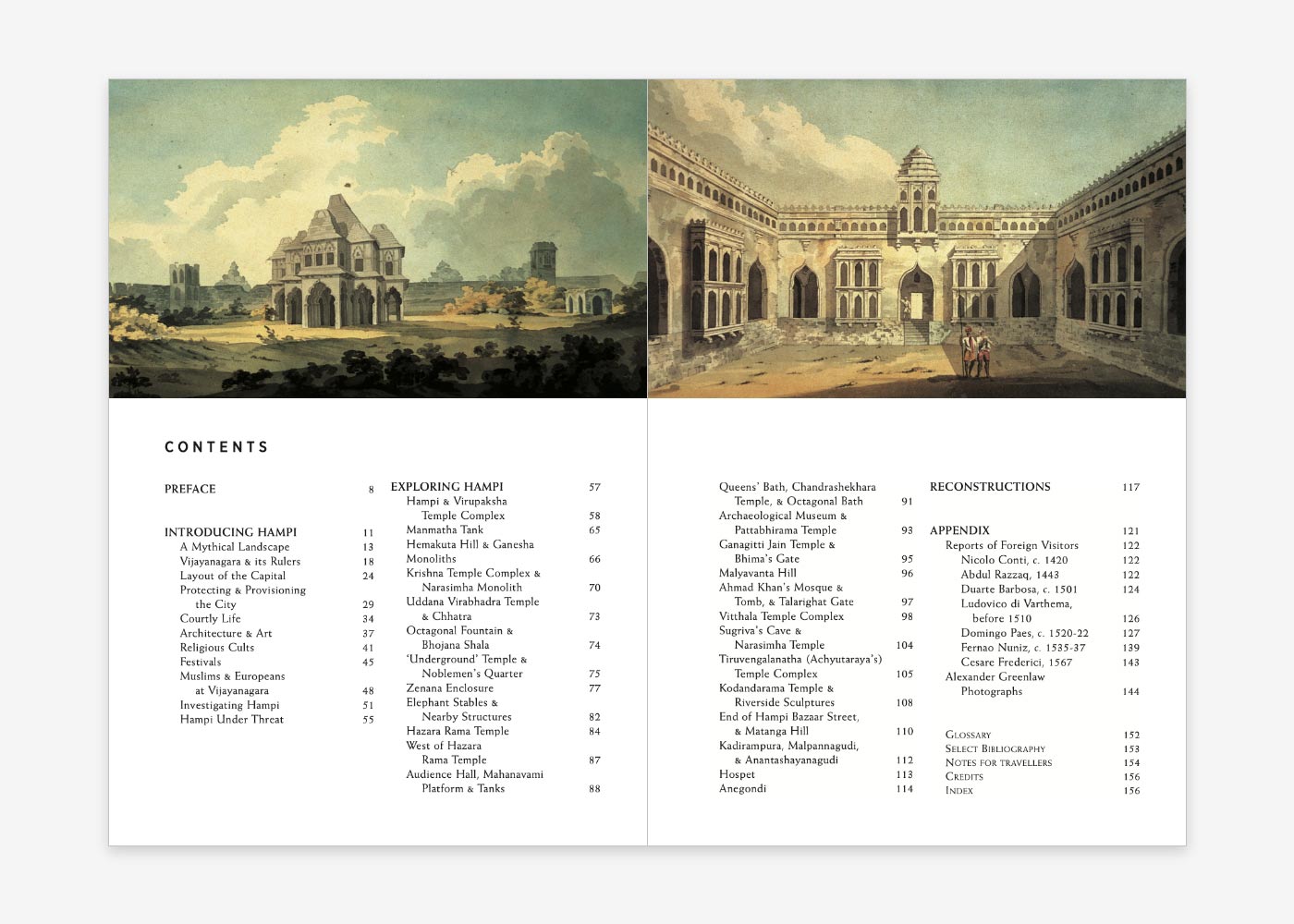 To help visitors understand how the royal structures once appeared, the guidebook contains helpful reconstructions. It then offers accounts of everyday life by foreign traders and ambassadors who visited the city in its heyday. These are followed by reproductions of the earliest photographs of Vijayanagara dating from 1857. With this array of information, visitors will be equipped to better appreciate the remains of this greatest of all imperial Hindu cities in the Deccan.