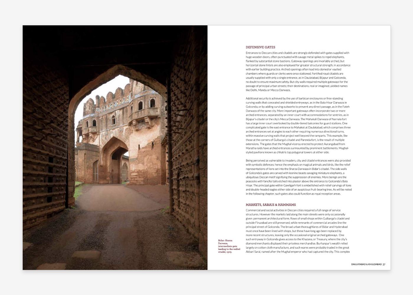 The buildings erected in the Deccan region of India belonged to a number of pre-Mughal kingdoms that reigned in the Deccan from the mid-fourteenth century onwards. The monuments testify to a culture where local and imported ideas, vernacular and pan-Islamic traditions fused and were re-interpreted, to create a majestic architectural heritage with exceptional buildings on the edge of the Islamic world. Many are still standing — yet, outside this region of peninsular India, they remain largely unknown.