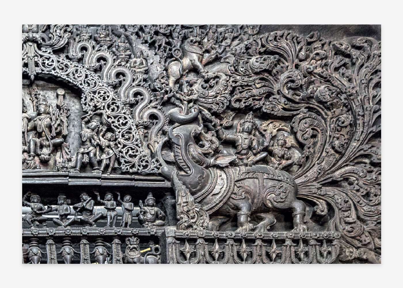 The 12th century temples of Halebidu and Belur, extraordinary achievements of Hoysala artists, are unsurpassed for their profusion of images and dense ornamentation.