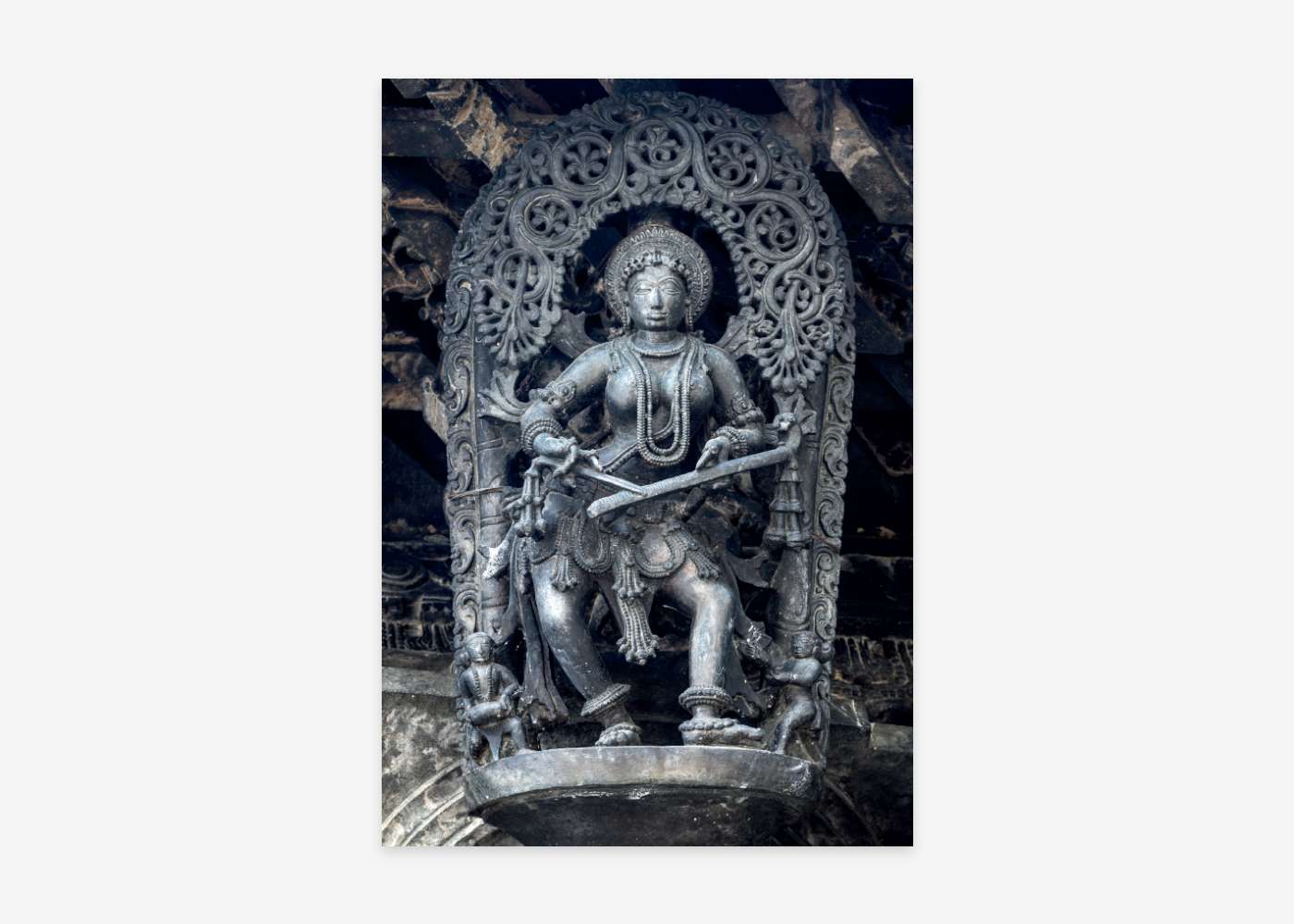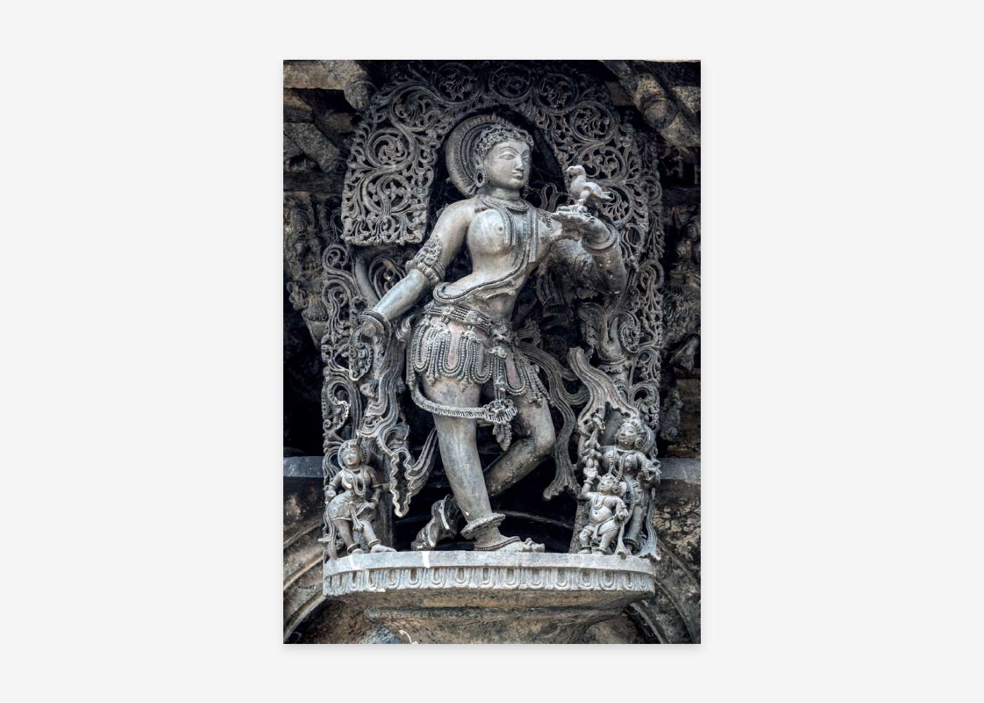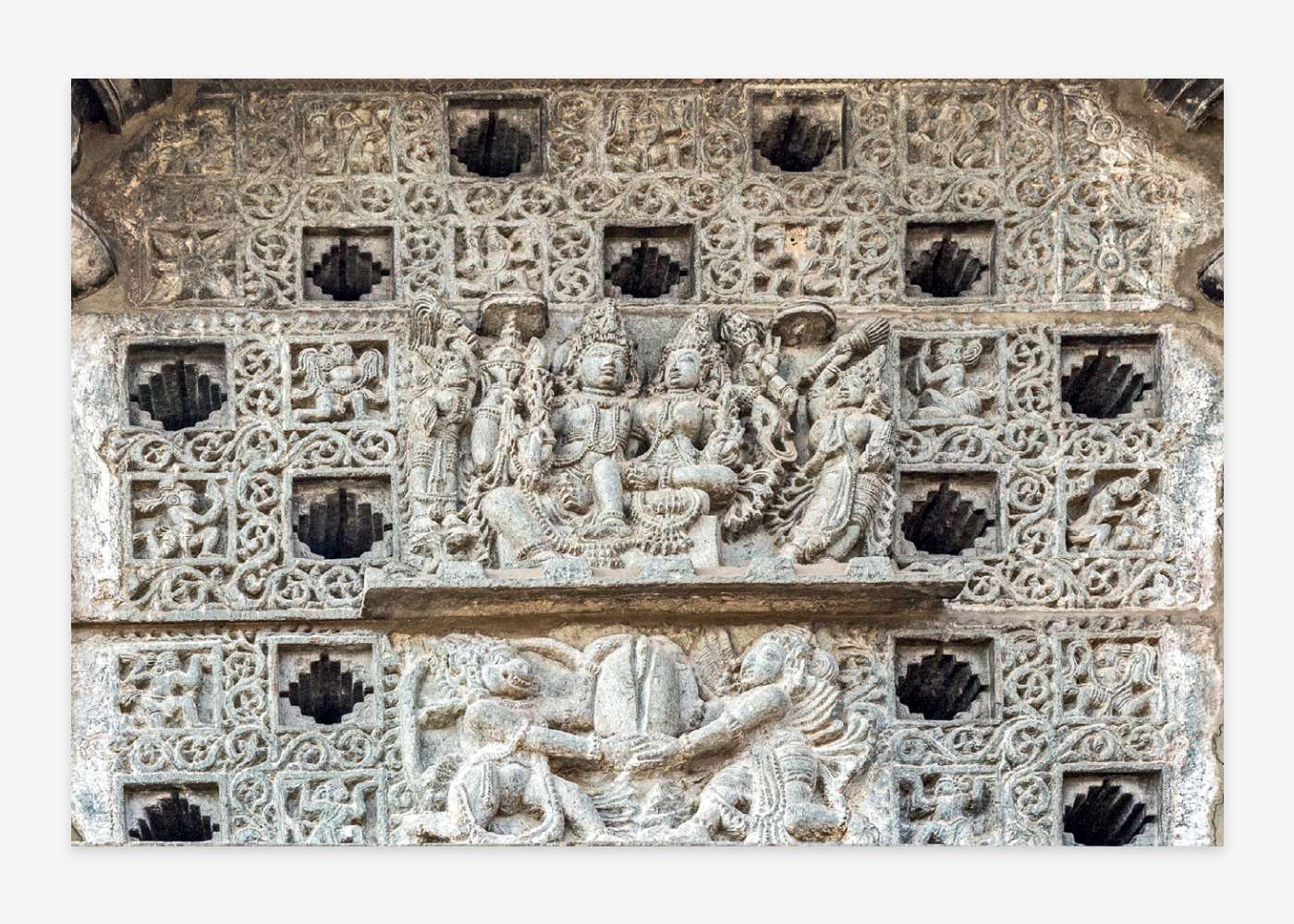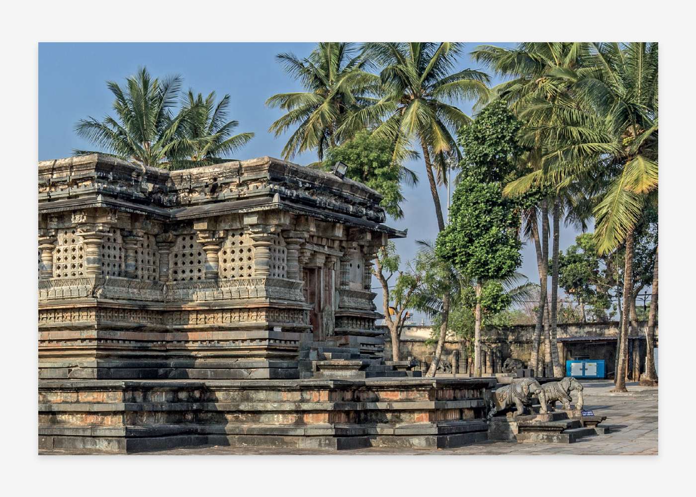 The Hoysalas were supreme rulers of the southern Deccan in the 12th and 13th centuries. Together with their queens, ministers and commanders, they sponsored a series of magnificent temples, the most famous of which are those at Belur, Halebidu and Somanathapura. The complicated layouts, elaborate wall treatments and spacious interiors of these monuments testify to the genius of Hoysala designers and builders, while the carved friezes, wall panels and column brackets illustrating Hindu myths and legends showcase the talents and imagination of Hoysala artists, many of whom signed their work.