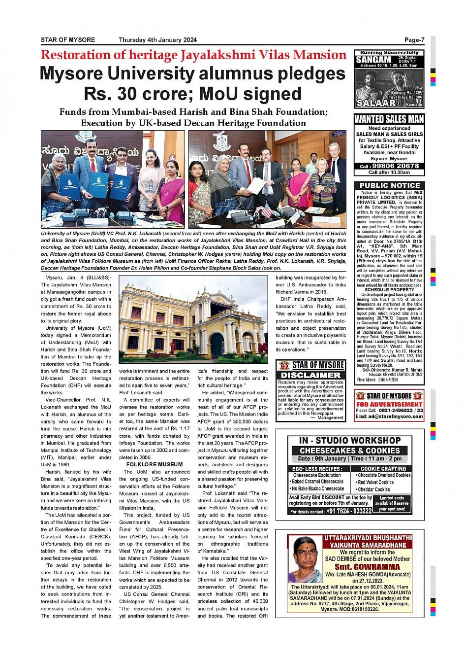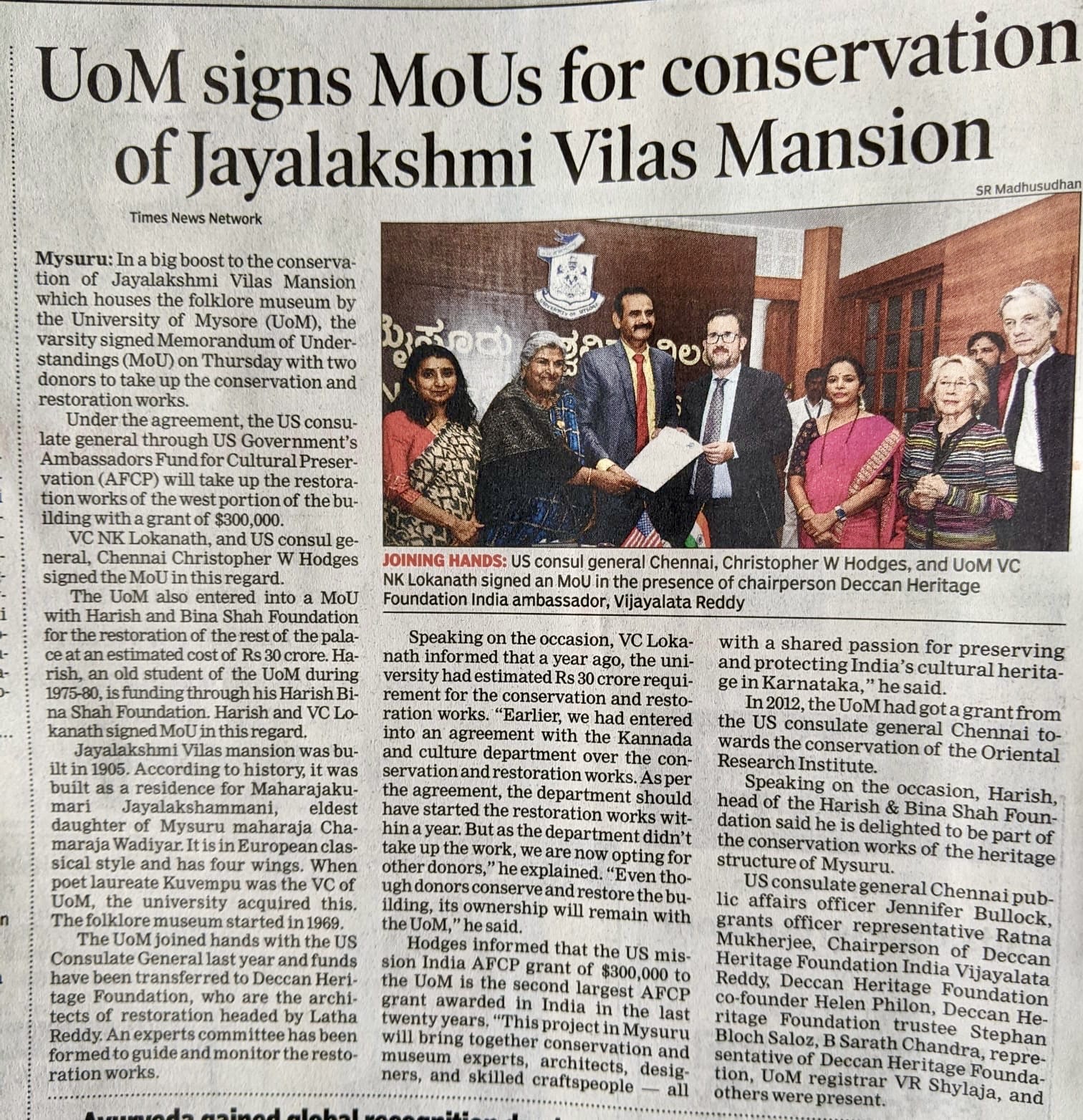 University of Mysore signs MoUs for conservation of Jayalakshmi Vilas Mansion