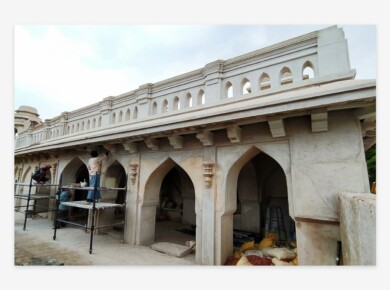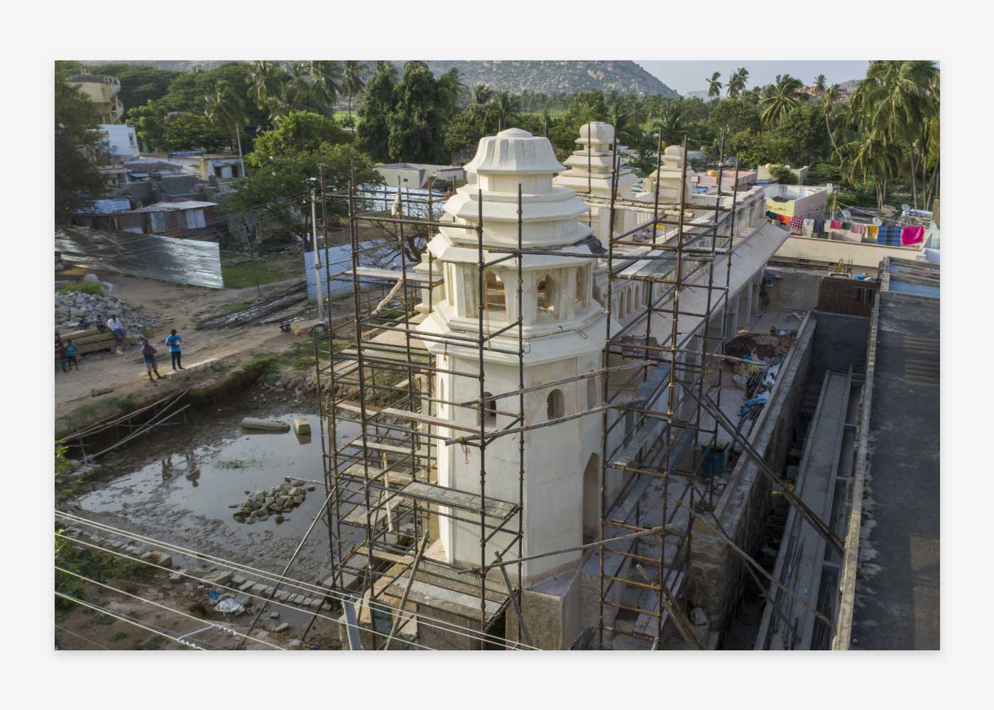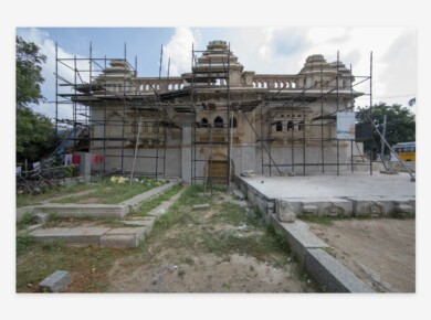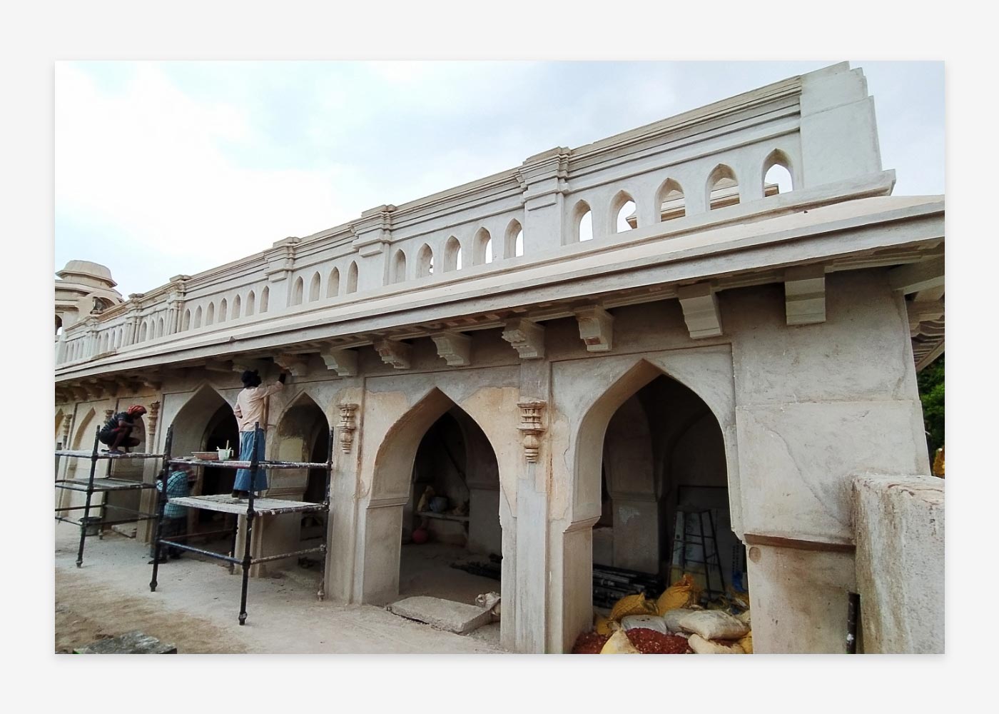 Under the direction of the Bengaluru office of the Deccan Heritage Foundation (DHF), the restoration of the Gagan Mahal was completed in the summer of 2022. Now rehabilitated, the Gagan Mahal represents not only an outstanding example of sixteenth century Vijayanagara palace architecture, but is also, once again, the centre of village economic and social activity. The restored building is available to the local community for the enhancement of their skills and livelihood, re-establishing the plaza as the commercial hub of the village.
