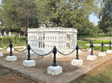 The Residency complex in the middle of Hyderabad represents the moment when the English East India Company began to exert its influence on the local Nizams. At the end of the eighteenth century, the British ‘Resident’ James Achilles Kirkpatrick built an opulent mansion with a magnificent, European-styled darbar hall in the middle of an extensive garden with pavilions and pools, and an adjacent cemetery for Europeans.